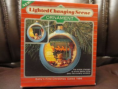 VINTAGE HALLMARK LIGHTED CHANGING SCENE ORNAMENT BABY'S FIRST CHRISTMAS 1986 NIB