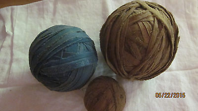 3 old large 19th c rag balls in blue brown calico fabric aafa antique find