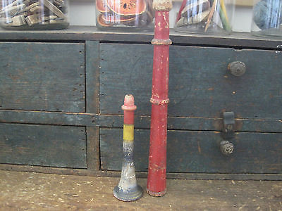 TWO Old Child's Wood Original Paint Horns Blue Mustard Red Great Find Bargain