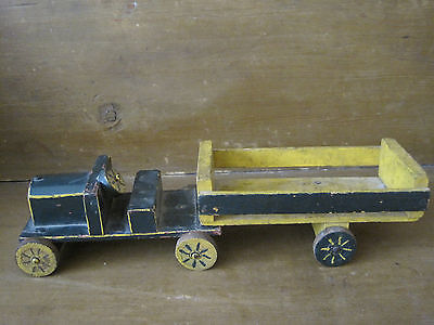 Old Primitive American Hand Made Wood Truck & Cart Old Mustard Green Paint