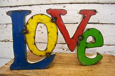 Handmade Scrap Metal Love Sign ~ Primitive Folk Art Shabby Rustic Home Decor