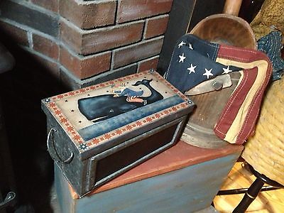 Title (ebay affiliate link): OOAK, New England Primitive Folk Art Uncle Sam and Whale Tin Candle Box