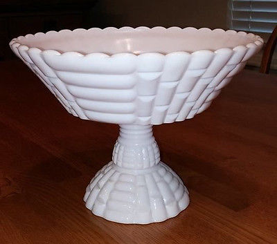 Title (ebay affiliate link): Vintage PINK MILK GLASS Floragold Footed FRUIT STAND/BOWL in great condition