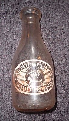 Title (ebay affiliate link): 2 Color A.C. Petersen Farms Milk Glass Bottle Hartford CT Bloomfield 1 quart qt
