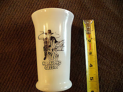 VINTAGE 1950'S HOPALONG CASSIDY HOPPY DINNER MILK GLASS CUP "HOPPY 14" on bottom