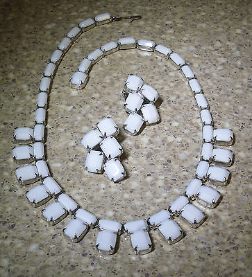 RARE Vintage Signed WEISS Snow WHITE Milk Glass Rhinestone Necklace ~ Classy