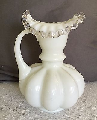 Large Vintage Fenton Milk Glass Silver Crest Melon Pitcher
