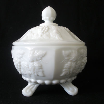 WESTMORELAND CANDY DISH * Paneled Grape Milk Glass Lid