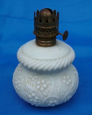 Title (ebay affiliate link): Miniature Flower Design Milk Glass Kerosene Lamp Base or Font