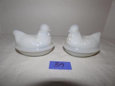 TWO Vtg White Milk Glass Hen on Nest Covered Dish Chicken Easter Hazel Atlas?