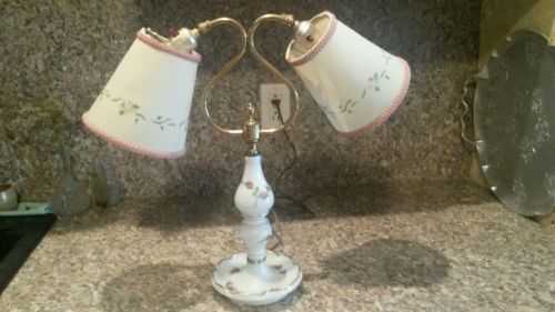 Title (ebay affiliate link): Vintage Mid Century Double light lamp Milk Glass Hand Painted