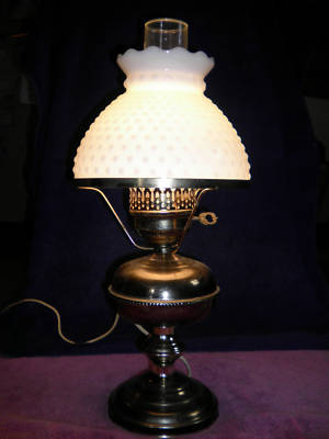 ANTIQUE HOBNAIL MILK GLASS HURRICANE LAMP