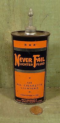Title (ebay affiliate link): Antique Vtg 1935 Never Fail Lighter Fluid, Lead Top, Advertising Tin, Can