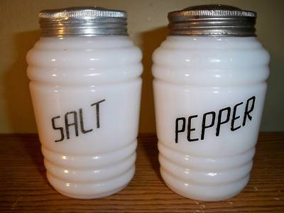 VINTAGE ANCHOR HOCKING MILK GLASS S&P SHAKERS