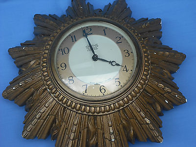 ANTIQUE/VINTAGE SMITHS 8 DAY, 4 JEWELS, SUNBURST WALL CLOCK, GWO