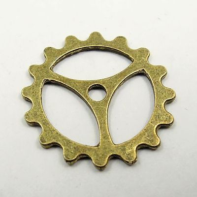 15pcs Antique bronze Alloy Round Clock Wheel Gear Pendant Charms 31526