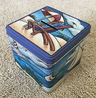 Century Resources collectible tin piggy bank beach sail boat nautical theme