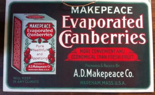 Title (ebay affiliate link): Original Vintage Makepeace Evaporated Cranberries Cardboard Grocery Store Sign