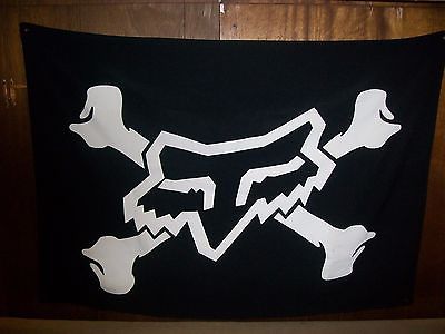 FOX RACING MOTOCROSS VICTORY PIRATE CLOTH BANNER FLAG 35"X50",SUPER RARE, HTF!!