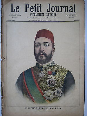 OLD PRINT ENGRAVING 1892 TURKEY EGYPT TEWFIK PACHA