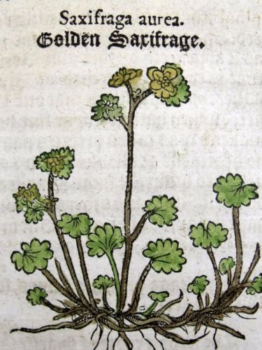 Title (ebay affiliate link): 1578 Handcolored WOODCUTS - SAXIFRAGA - Herbal Borcht LEAF ENGLISH EDN