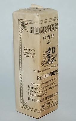 Vintage Humphrey's Homeopathic "2" Roundworm Bottle in Unopened Box