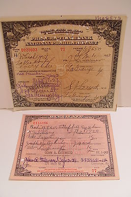 2 PROHIBITION ERA WHISKEY PRESCRIPTIONS. 1927 AND 1929. EXCELLENT CONDITIONS.
