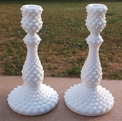 Title (ebay affiliate link): Vintage PAIR Fenton Hobnail White Milk Glass 9" CANDLESTICKS 1950's Excellent NR