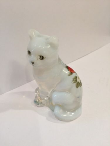 Title (ebay affiliate link): Fenton Glass Hand Painted Cat - Artist Signed Milk Glass Strawberry - 3.5" Tall