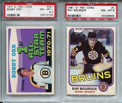 1971 OPC O-PEE-CHEE BOBBY ORR #251 + 1981 OPC RAY BOURQUE #1 PSA 8.5 + 8
