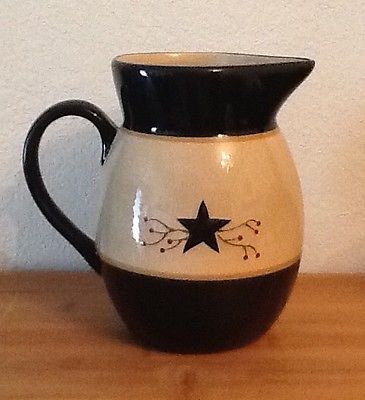 Title (ebay affiliate link): Big ceramic pitcher black tan red star vines primitive rustic