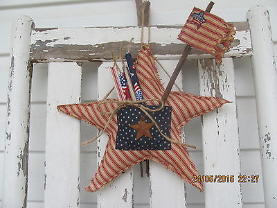 Primitive Americna Grungy Star Firecracker Flag Door Greeter Peg Hanger Charmer