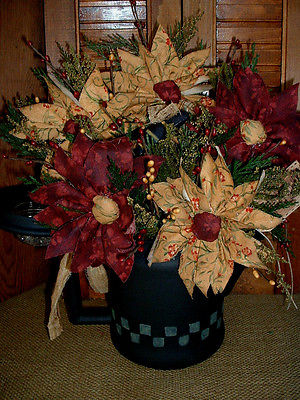 VINTAGE COFFEE POT~HAND PAINTED~WILDFLOWERS~BURGUNDY/MUSTARD~BEE~PRIM