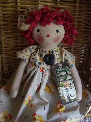 Title (ebay affiliate link): .PRIMITIVE ~RAGGEDY ANN~RAG DOLL ANNIE~rooster-chicken