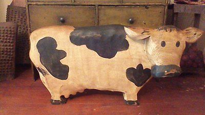 Primitive Folkart Wooden Cow