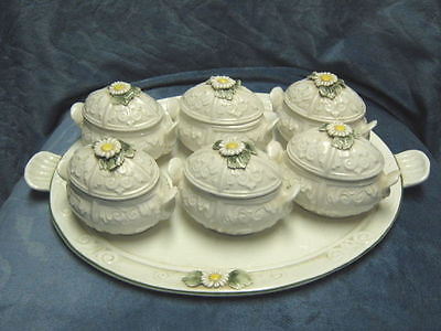 Six Capodimonte covered dishes / bowls with Matching Tray, Beige Daisy pattern