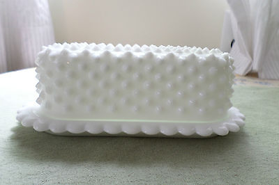 fenton milk glass hobnail butter dish 7 1/2" w/ logo ex unused condition