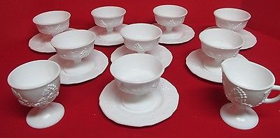 Title (ebay affiliate link): Set of 8 Indiana Harvest Grape White Milk Glass Pedestal Dessert Cups & Plates