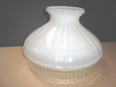 VTG OPAQUE MILK GLASS RIB CLEAR BOTTOM OIL KEROSENE ELECTRIC 10 " GLASS SHADES