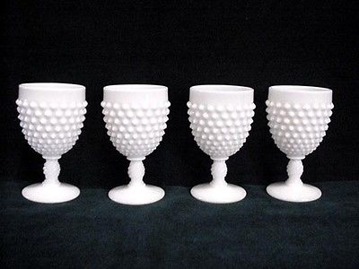 Fenton milk glass 4 hobnail goblets