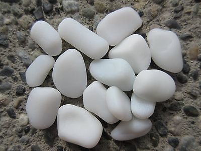 Sea Beach Glass. Milk Glass. 15 med. pcs. Surf-tumbled & Rounded.