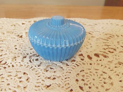 Vintage Opaline Blue Milk Glass Ribbed Trinket Dresser Box Dish w/Lid
