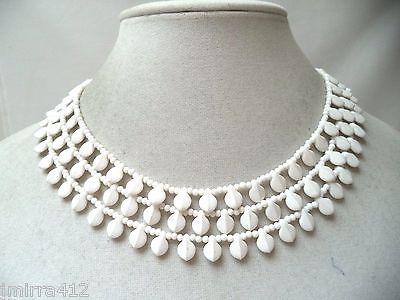 GORGEOUS VINTAGE ESTATE SIGNED JAPAN WHITE MILK GLASS BEADED NECKLACE!!! 2078Z