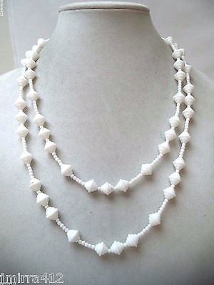 GORGEOUS VINTAGE ESTATE GOLD TONE WHITE MILK GLASS BEADED NECKLACE!!! 2079C