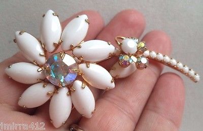 Title (ebay affiliate link): STUNNING VINTAGE JULIANA D&E MILK GLASS AB RHINESTONE FLOWER BROOCH MINT! G1928