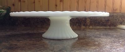 Vintage Milk Glass Cake Stand Scalloped Base StarBurst Design