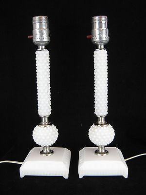 2 Vintage Hobnail Milk Glass Candlestick Electric White Table Light
