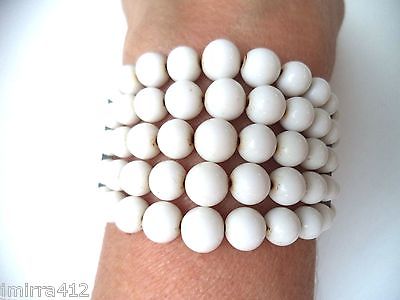 GORGEOUS VINTAGE ESTATE WHITE MILK GLASS BEADED THICK ADJ BRACELET!!! 2087R