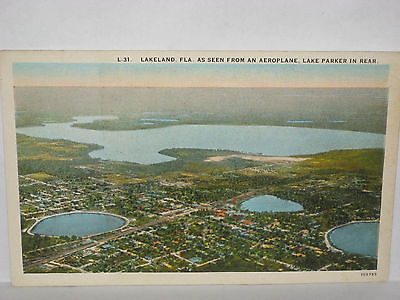 1930 POSTCARD LAKELAND FL AS SEEN FROM AN AEROPLANE " LAKE PARKER IN REAR UNUSED