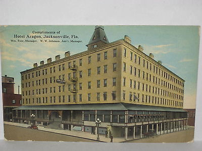 1920 ADV POSTCARD " COMPLEMENTS OF HOTEL ARAGON " JACKSONVILLE FL UNUSED